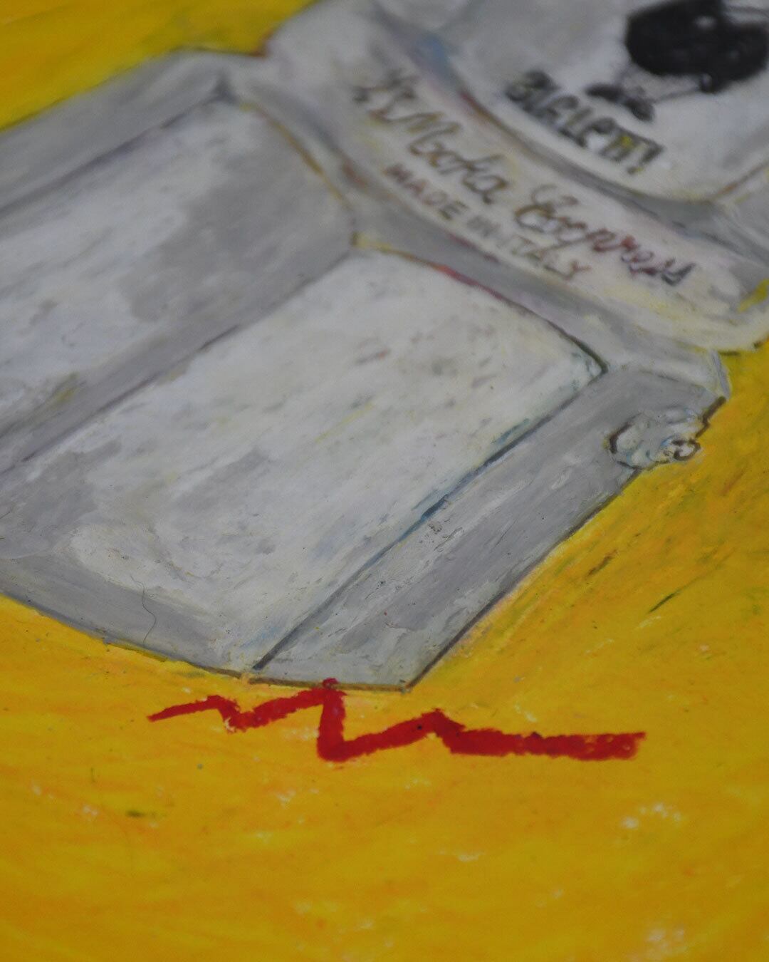 原画です。 サイズ:A4 画材:クレヨン 額装付き ※ 猫を飼育している環境で制作・梱包しています。猫アレルギーの方はご留意ください。